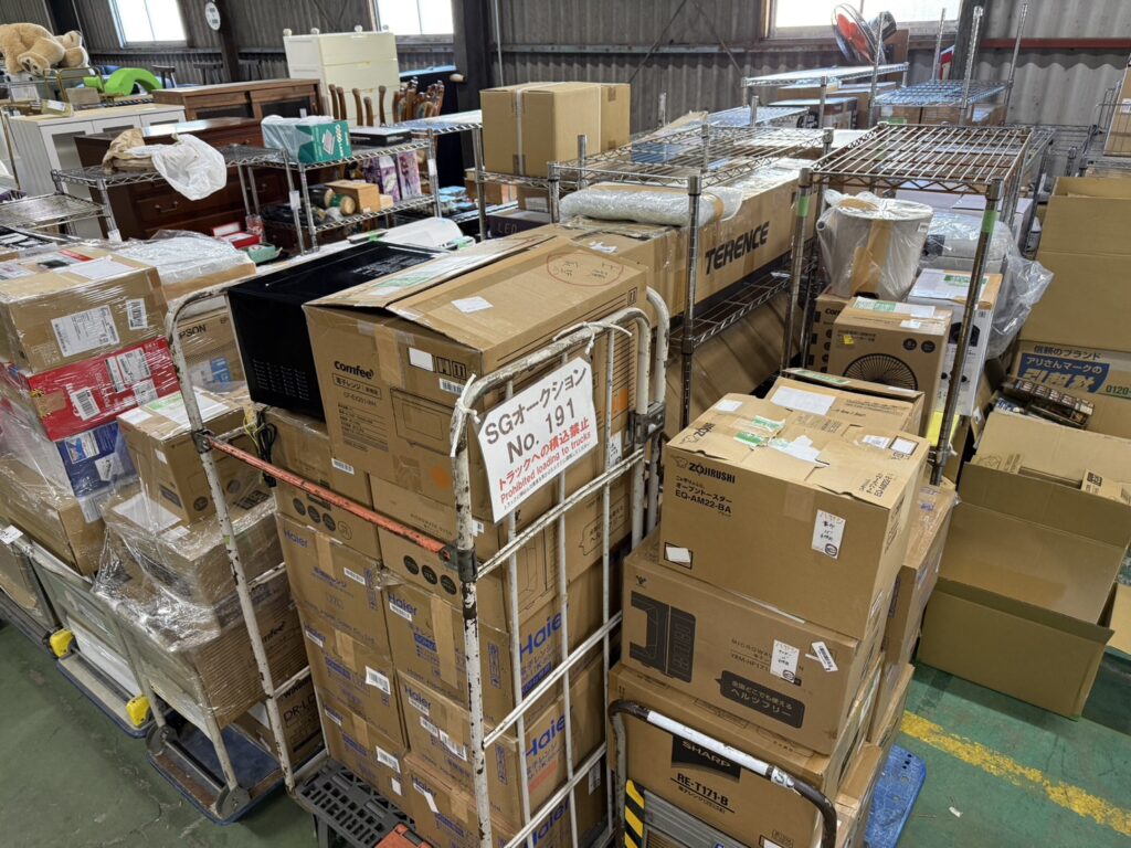 今週は家具も多いですね。1開催でコンテナ2台以上は余裕で作れちゃう物量。年明けてバンニング予定埋まってるんでしょ?