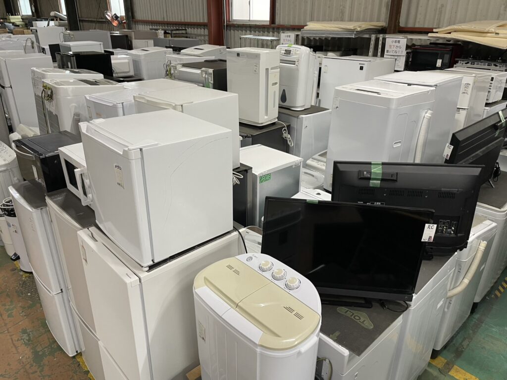 柱4本。いつも通りしっかりと集まっています。毎週これだけ集まるなら家電だけ週1日開催できちゃいますね。今週はアマゾン系家電山ありませんが小家電も充実したラインナップですよ。